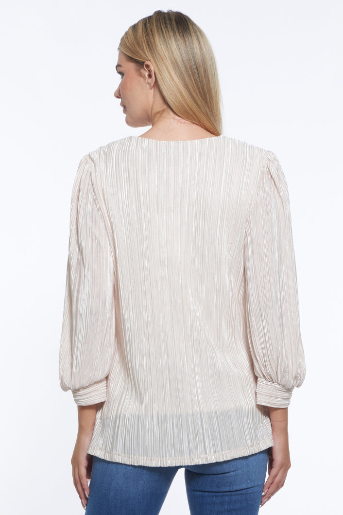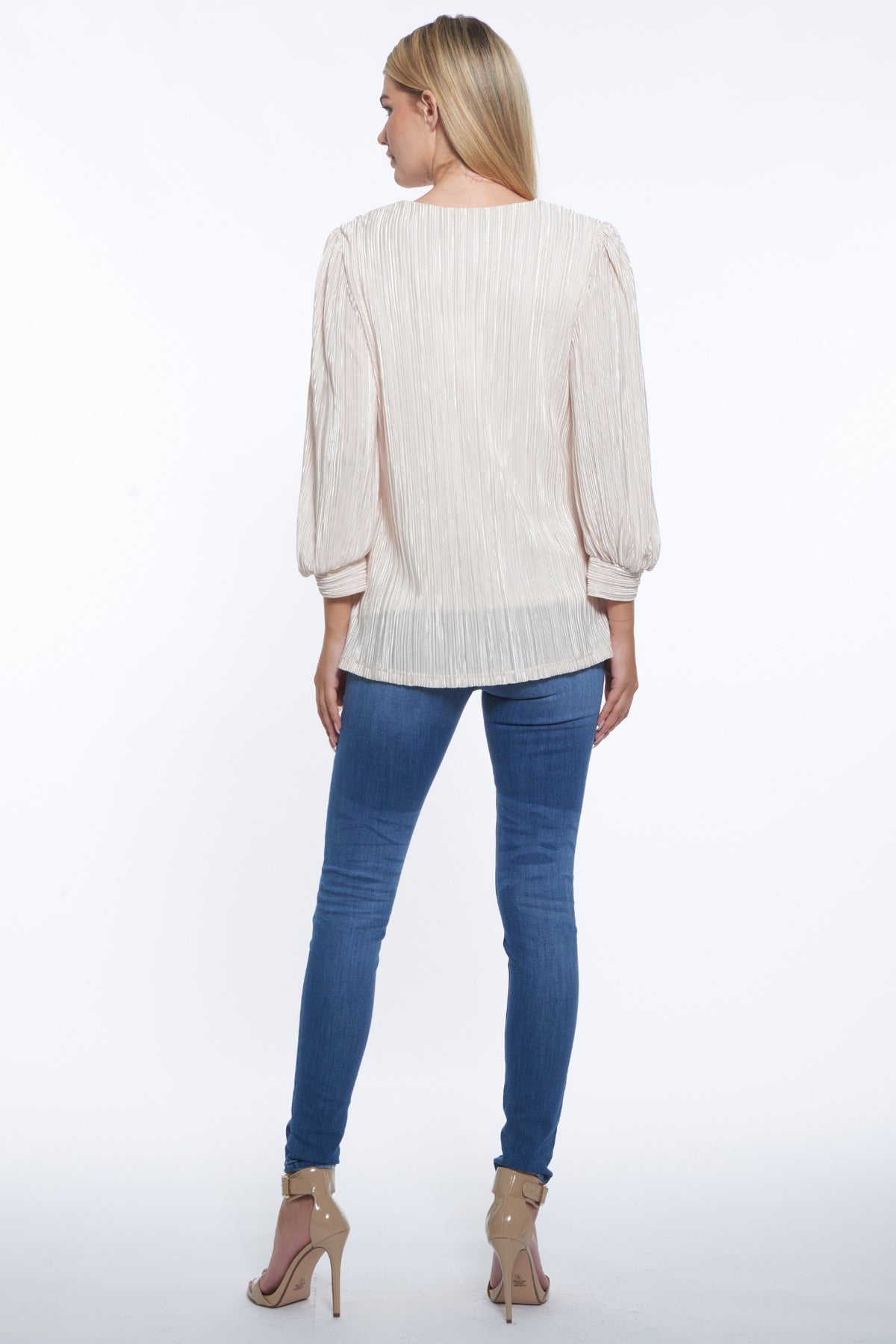 Effortless sophistication meets fluid movement in this ultra-soft plissé blouse designed to shimmer with subtle elegance. Soft pleating and voluminous sleeves create graceful dimension, while the lightweight, luxurious fabric drapes beautifully over every silhouette. Versatile and refined, it transitions seamlessly from day to evening with polished ease.