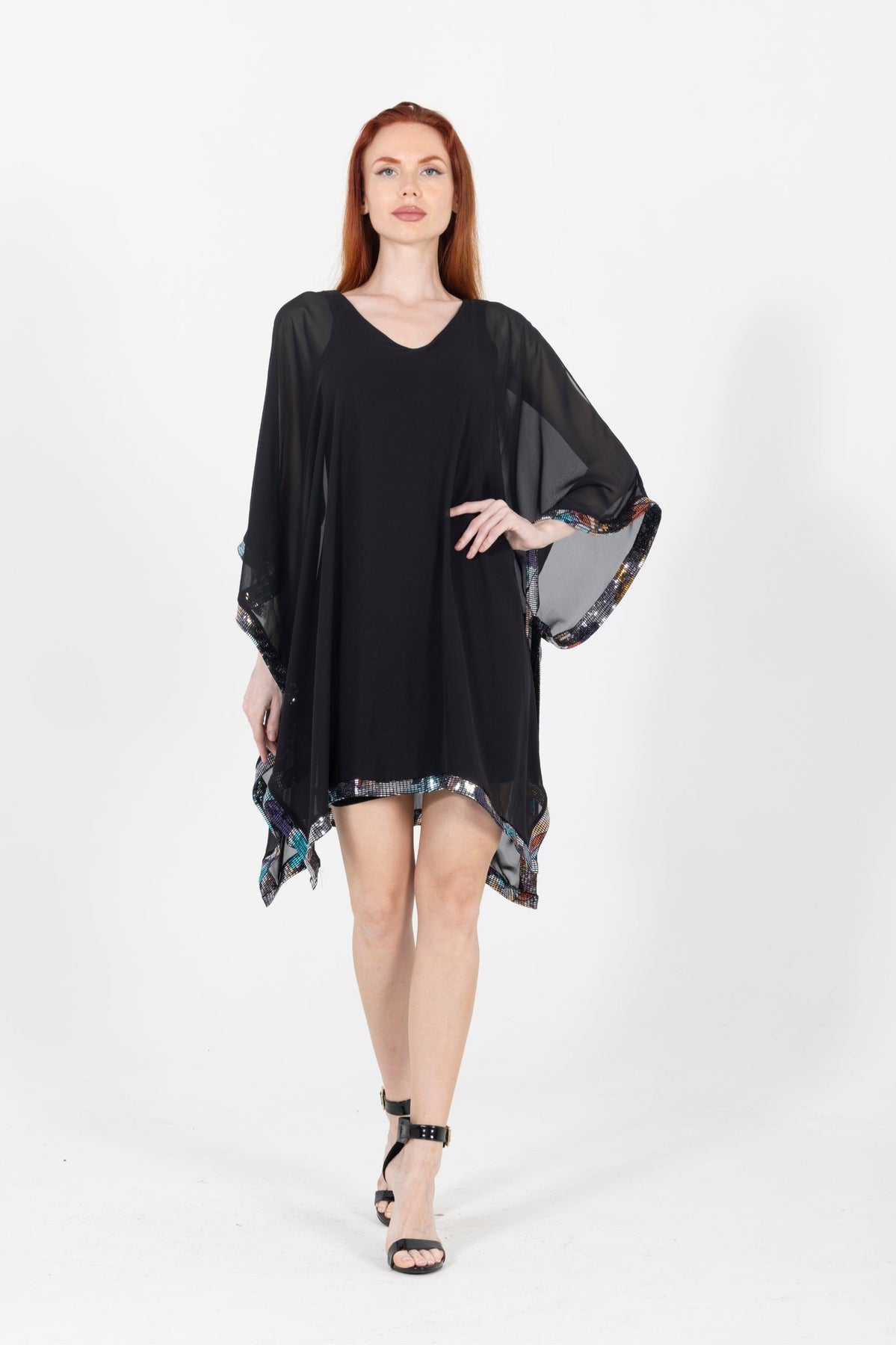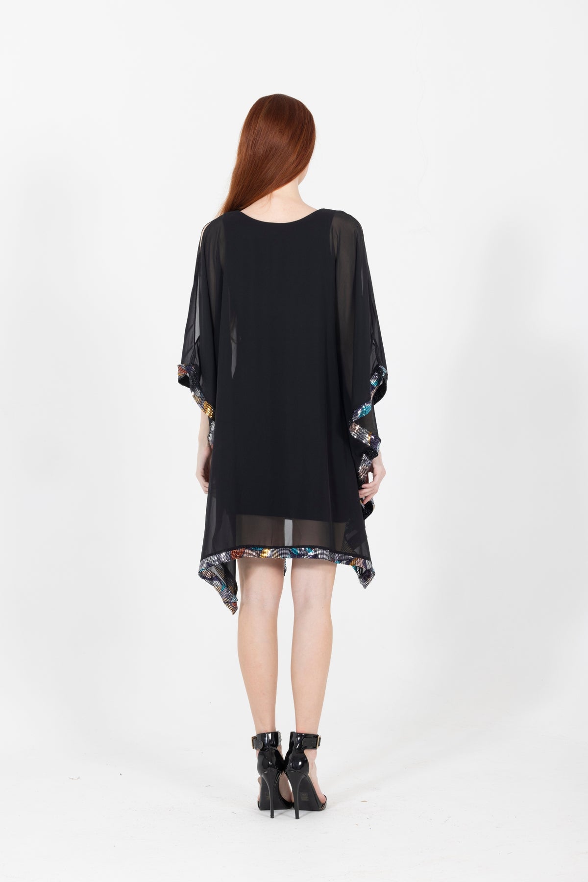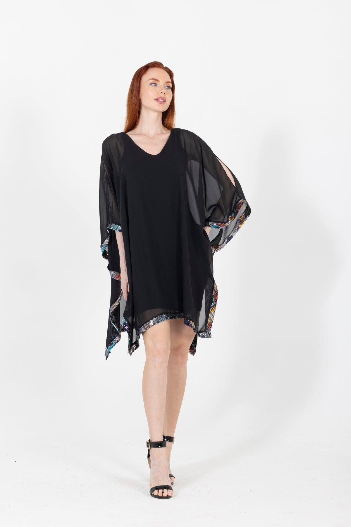 The Julie Dress in Celebration combines a chic A-line silhouette with a vibrant, artistic print. Its comfortable and versatile design makes it ideal for festive events or evening outings.