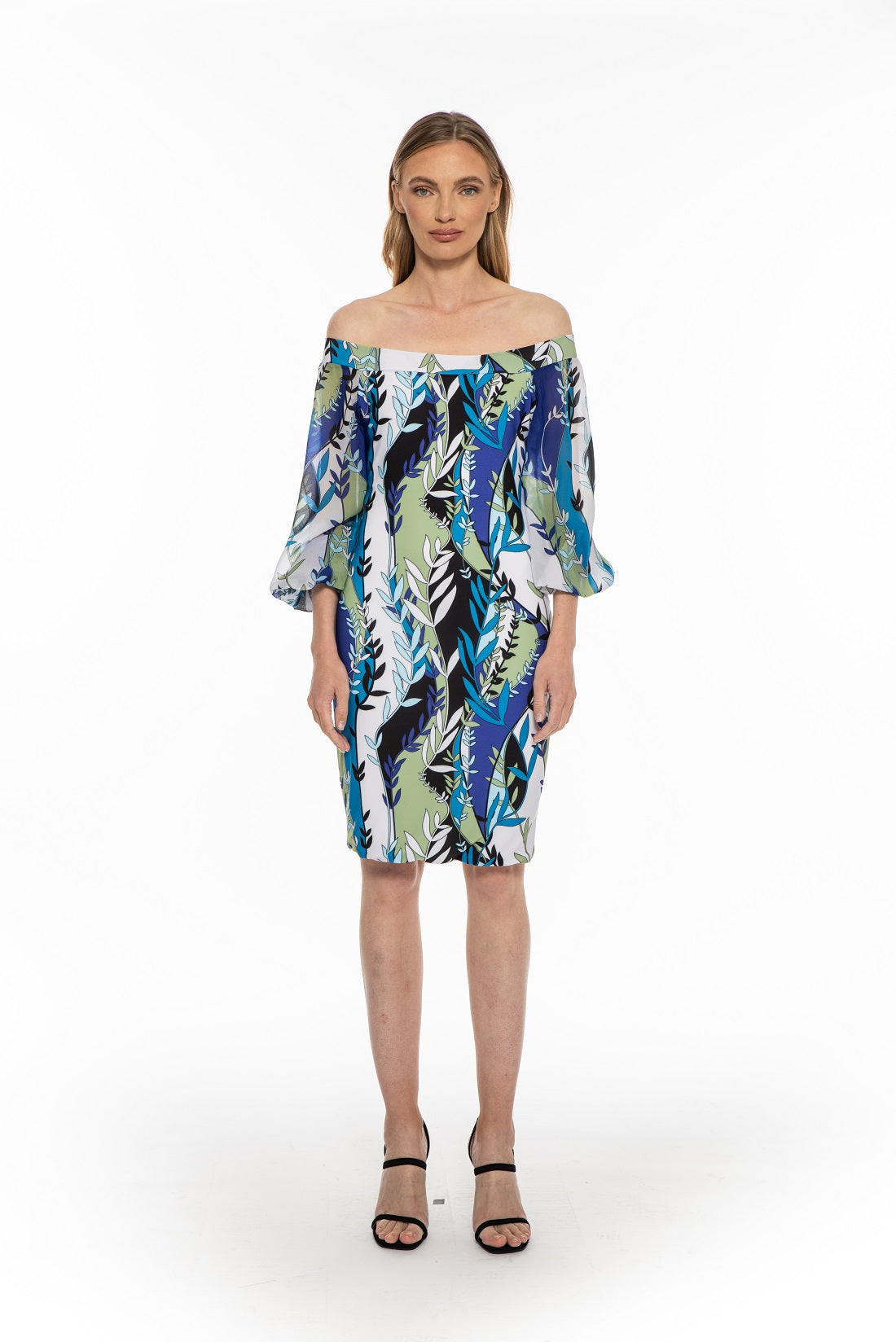 Our Laurel Dress is a sophisticated and stylish option for any occasion. Crafted with an off-shoulder design, 3/4 sleeves, and a fitted silhouette, this stylish cocktail-length dress is sure to turn heads. The tailored fit of this garment flatters the figure while offering a modern, effortless look.