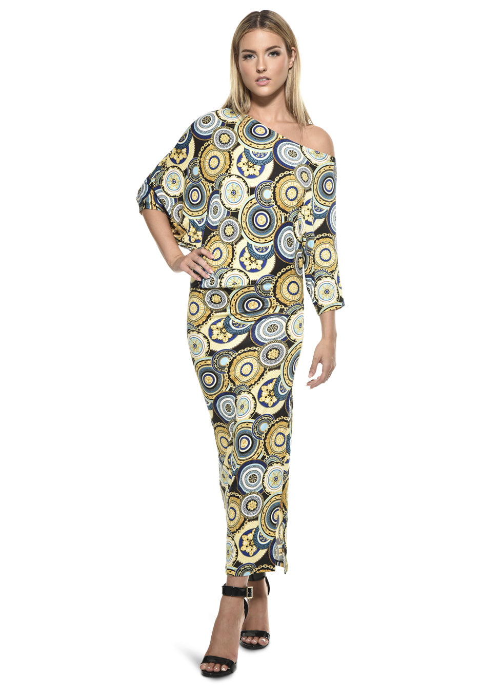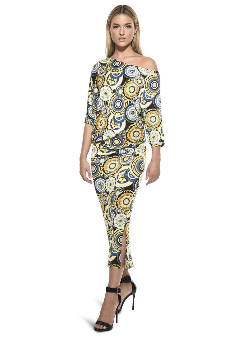 Step into the spotlight with the Julian Chang Mariel Dress in Versus print. This elegant dress features an off-the-shoulder neckline, creating a sophisticated and feminine silhouette that exudes confidence and style. The Versus print is a vibrant and intricate design that adds a pop of color and personality to your wardrobe. The dress is cut to midi length with a flattering side slit, making it perfect for both casual outings and dressier occasions. Whether you're heading to a brunch, a cocktail party, or a night out, the Mariel Dress will ensure you make a statement.