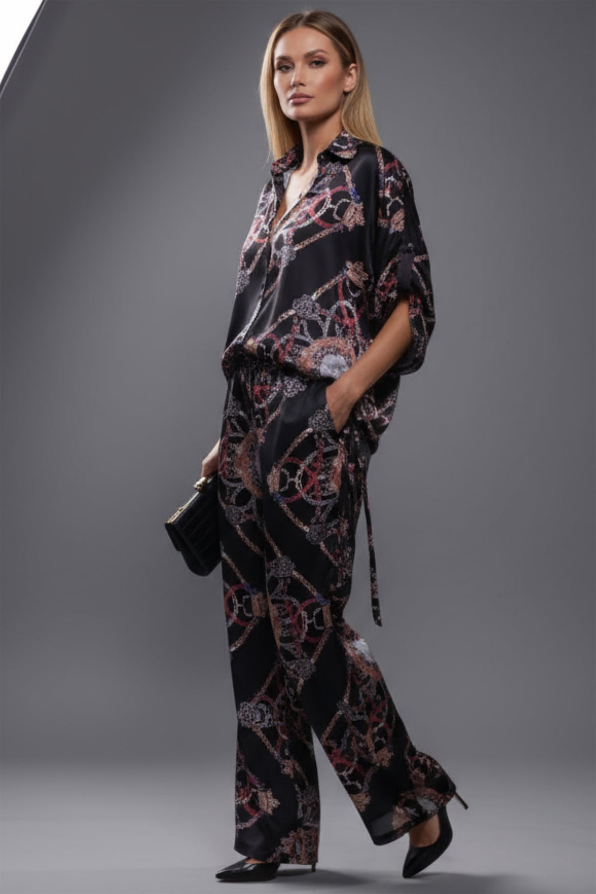 A striking Gothic print meets fluid sophistication in the Suan Top—a timeless silhouette reimagined for modern expression. Crafted in silky fabric with a relaxed drape, it’s finished with a collared neckline, statement sleeves, and an adjustable drawstring waist for polished versatility.