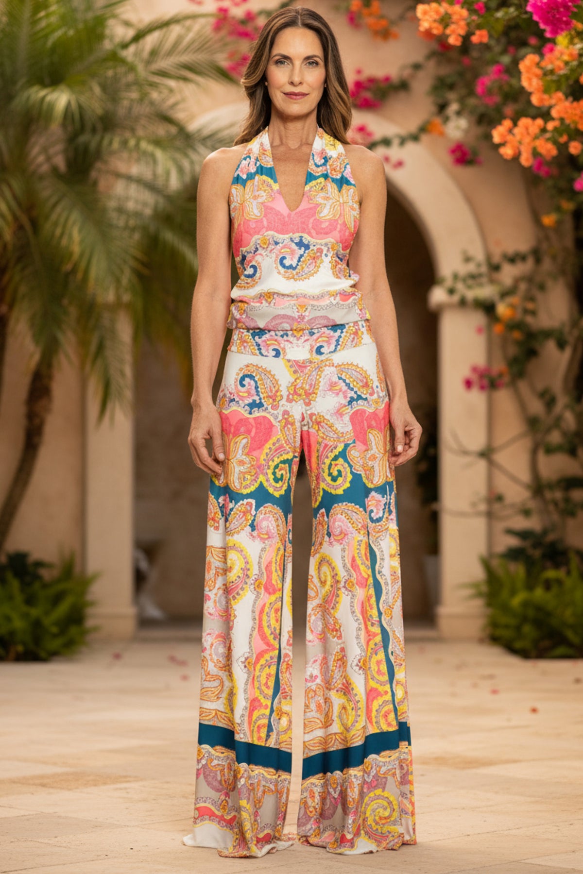 An effortless statement in stretch jersey, this fluid wide-leg jumpsuit features a sculpted V-neckline, soft elastic waistband, and a dramatic open back that flatters with every movement. Designed to glide over curves and resist wrinkles, it’s the perfect companion for gallery brunches, rooftop cocktails, or spontaneous getaways. With its lightweight drape and packable polish, it’s glamour made for motion.