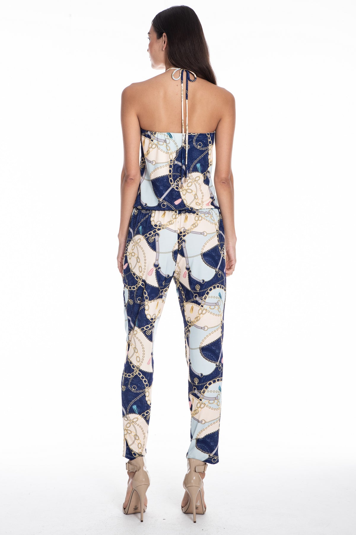 Sleek. Sculptural. Boldly feminine. The Jackson Jumpsuit stuns with its strapless neckline and optional halter tie, all in our captivating Blue Caprise print. Crafted in a silky rayon-spandex blend, it skims the body with a soft drape and elongates the frame with a slim, tapered leg. From resort dinners to city rooftops, this is effortless sophistication with a twist.