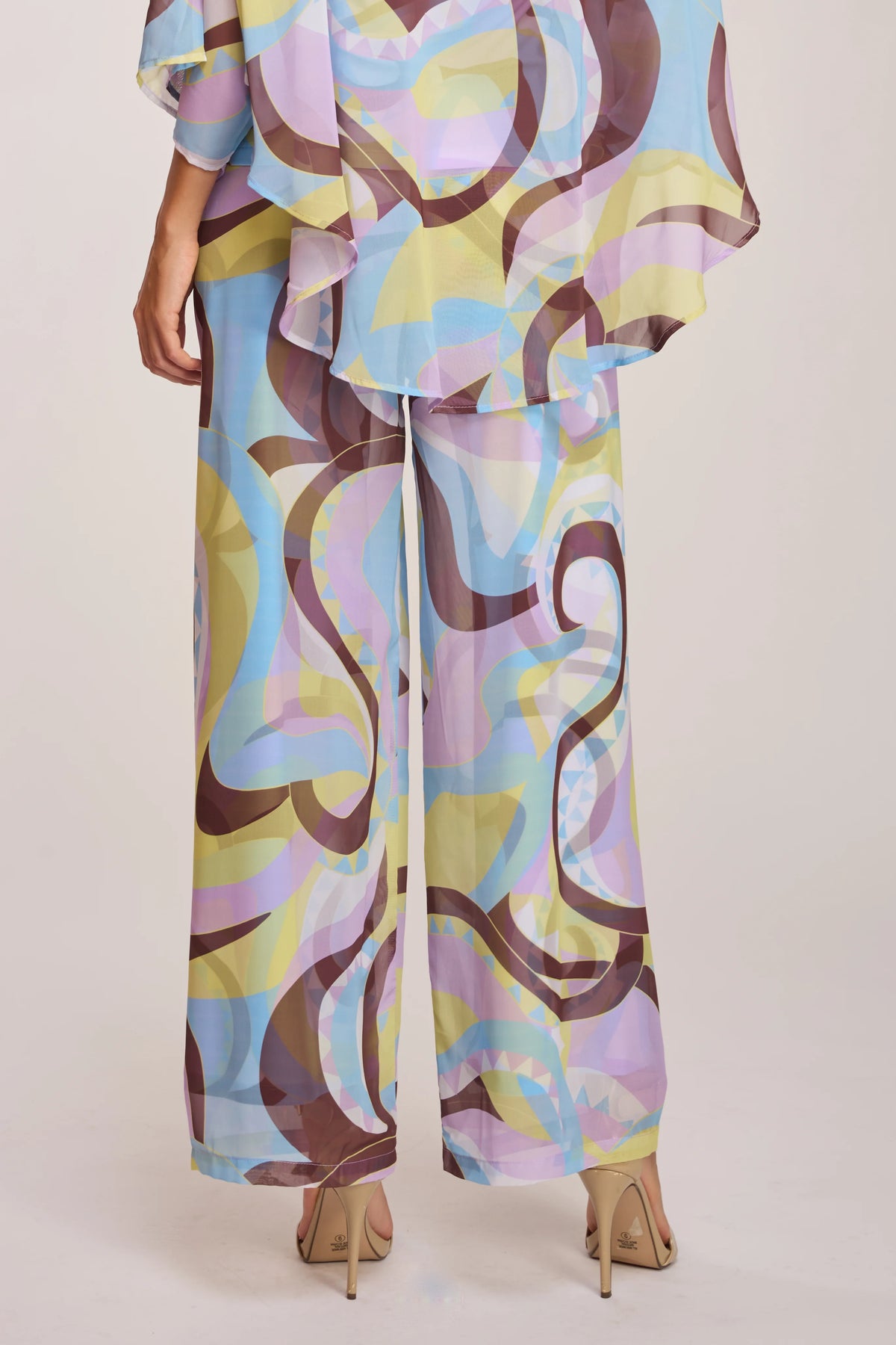 Dramatic impact without heaviness—perfect when you want movement, coverage, and breathability in one piece. The sheer wide-leg silhouette creates a long, fluid line through the leg, skimming the hips and thighs with effortless ease. Lightweight and airy, it layers beautifully over a sleek short or bodysuit and pairs seamlessly with the matching top for resort evenings, art events, or elevated travel moments.