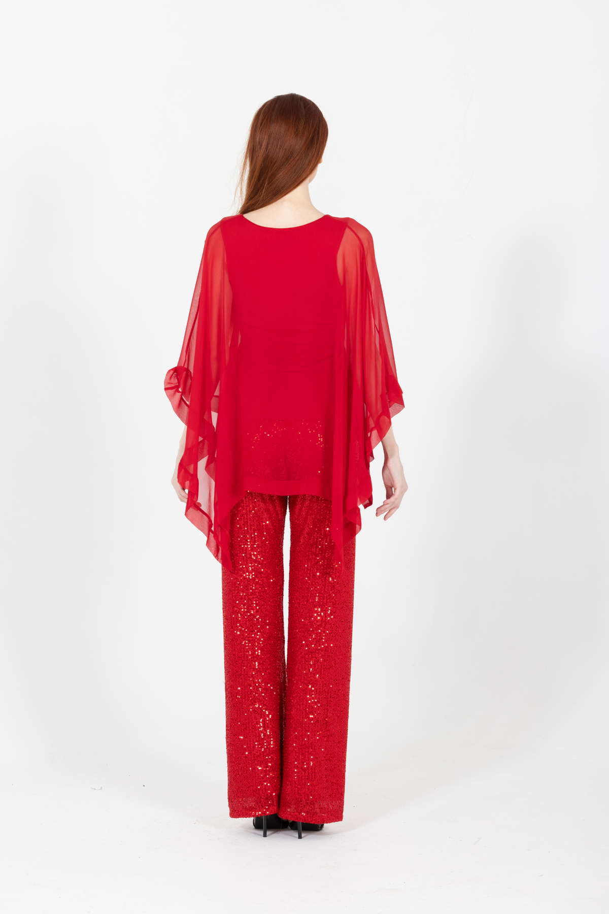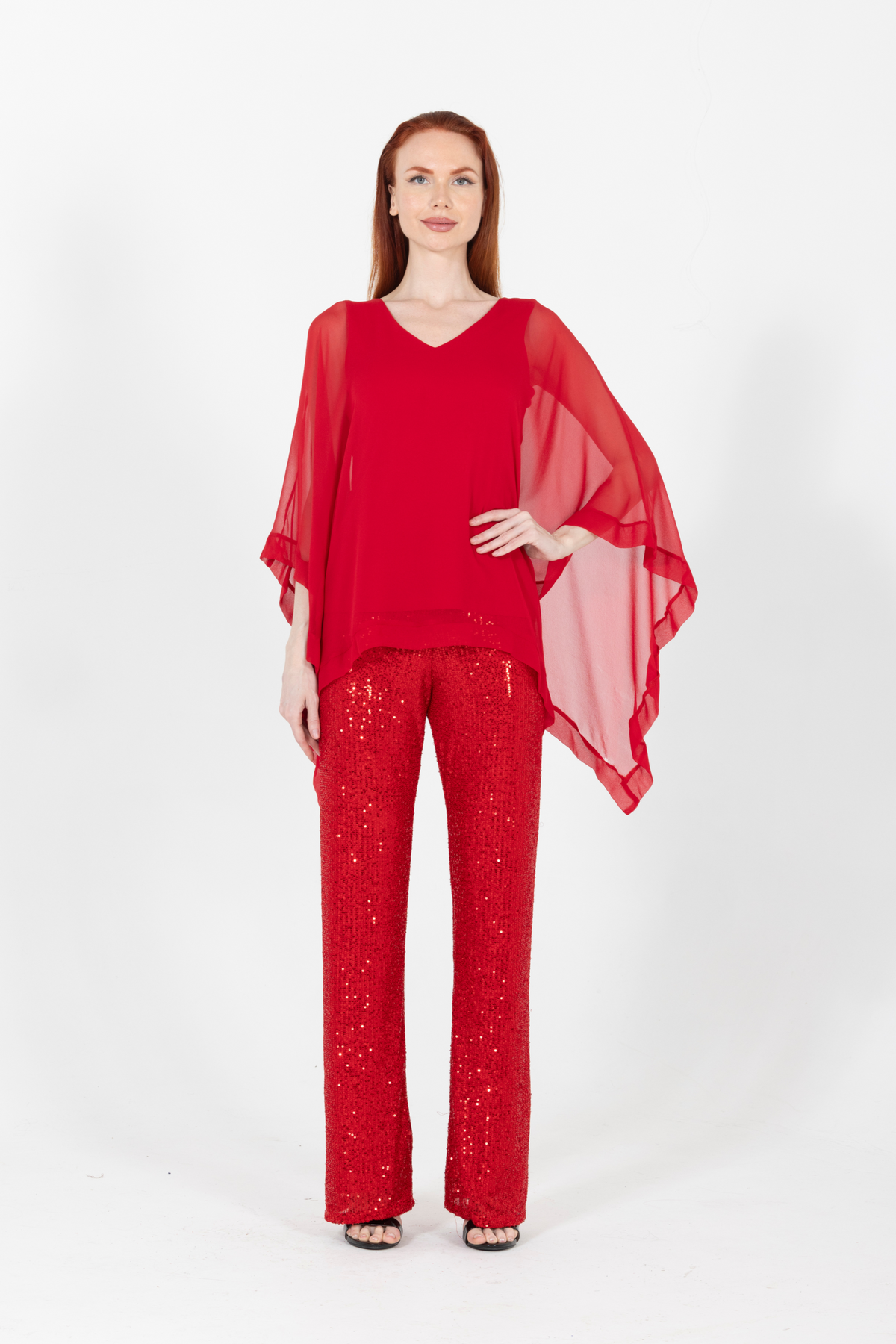 The Penny Top in Red brings festive flair with its rich color and delicate detailing. Paired with the matching Marc Pant in Red, this bold ensemble is perfect for holiday gatherings and makes a striking statement.