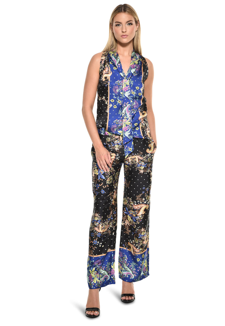 Complete the look with the Sam Pant in Allegra Print. These flowy, wide-leg pants feature the same captivating Allegra print, adding drama and sophistication to your ensemble. The high-waist fit and side pockets offer comfort and practicality, while the luxurious fabric ensures a chic silhouette. Wear it with the Echo Top for a coordinated look or mix it with neutral tones for a fashion-forward vibe.