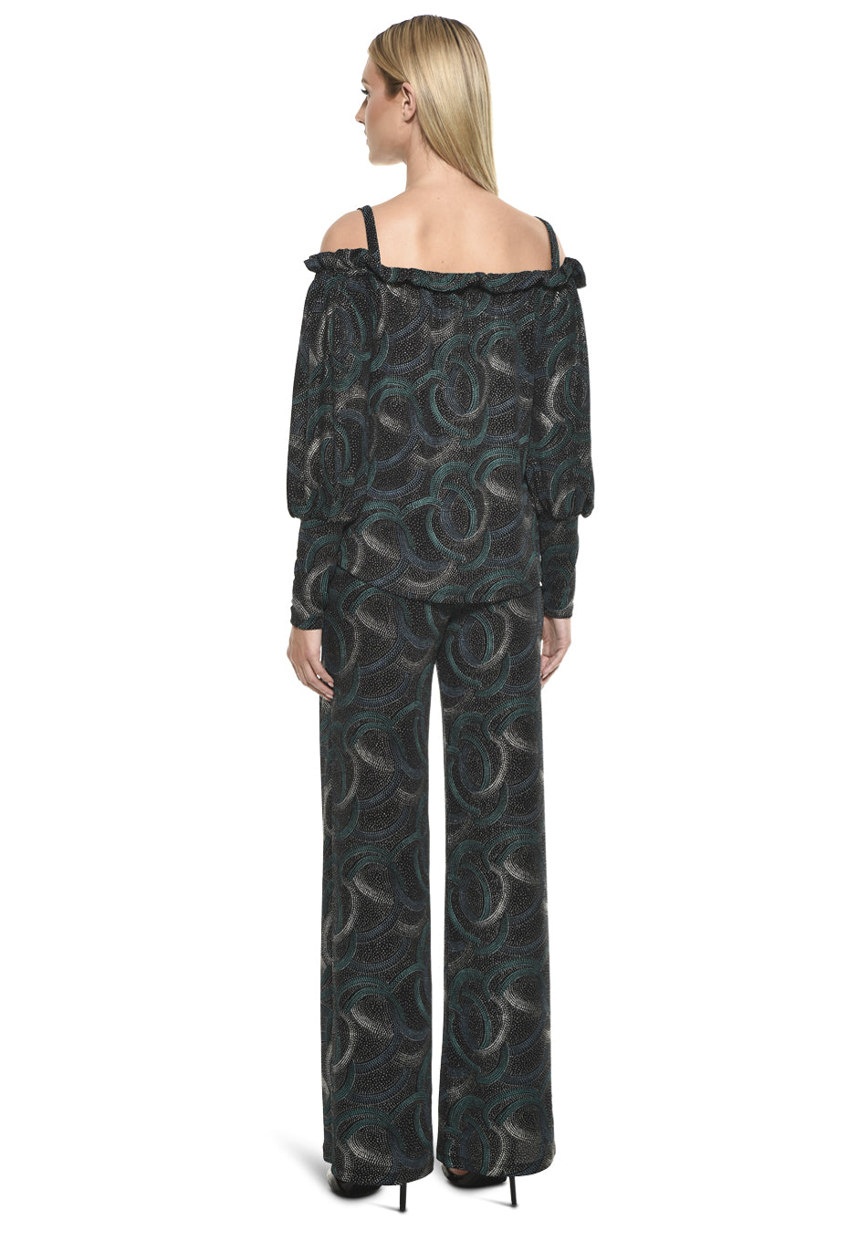 Elevate your evening look with the Ford Top and Ulla Pant Set in Disco by Julian Chang. Featuring a dynamic and bold Disco print, this set combines glamour with comfort. The Ford Top’s off-the-shoulder design with subtle ruffle detailing adds a feminine touch, while the Ulla Pant’s relaxed fit and wide-leg silhouette offer an elongating and flattering shape. This head-turning duo is perfect for holiday parties, cocktail events, or whenever you want to make a statement.