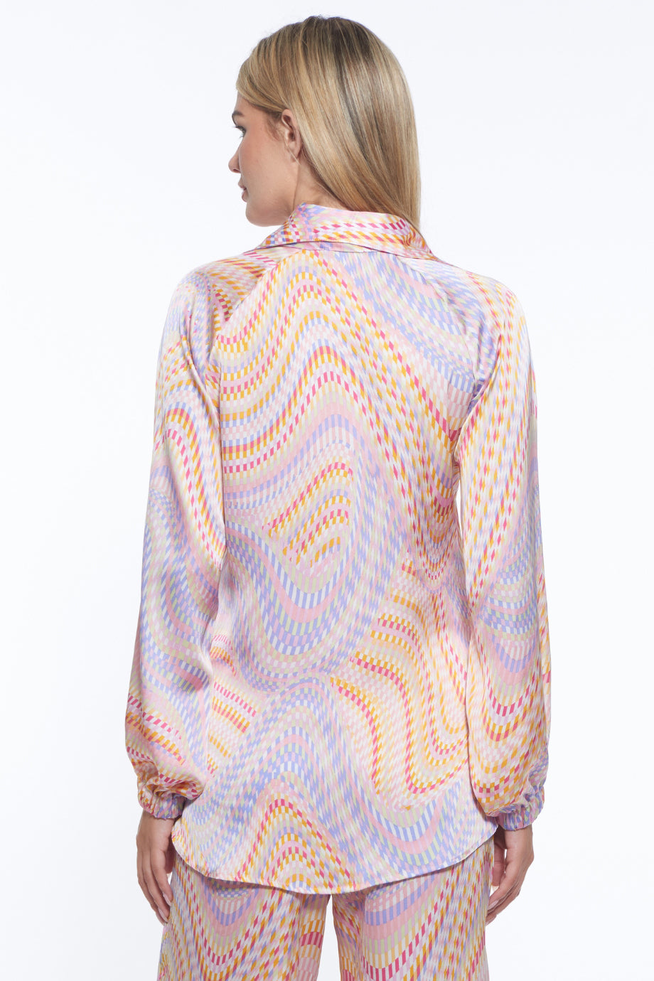 Redefine casual chic with a fluid button-up silhouette that feels as effortless as it looks. Its luminous pastel pattern evokes movement and modernity, while the lightweight fabric offers all-day comfort and wrinkle resistance. Pair it with the matching Unisa Pant for a bold statement set or knot it over denim for an artfully relaxed finish—confidence, color, and comfort in one signature piece.