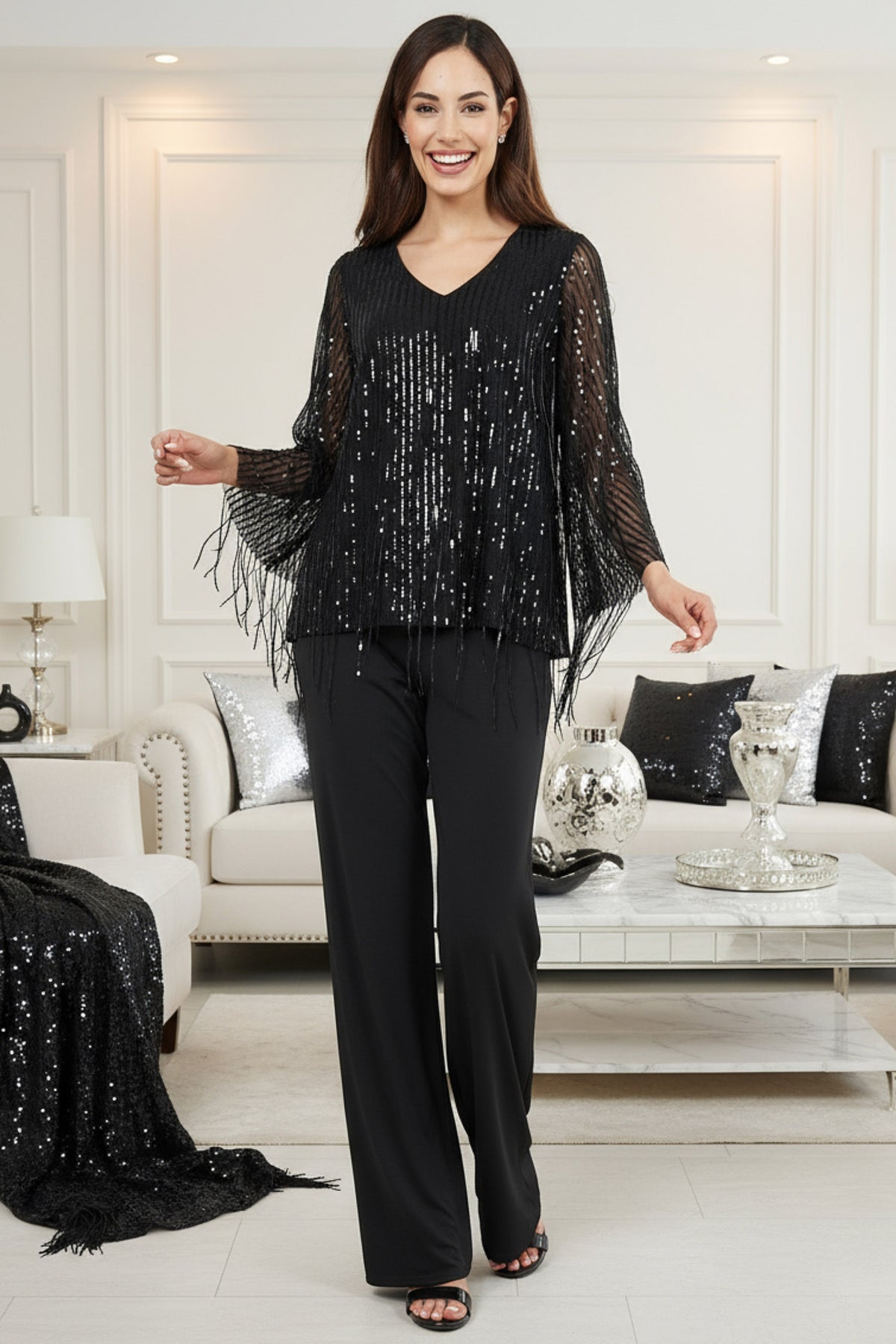 Shimmer in motion—where fringe meets finesse.