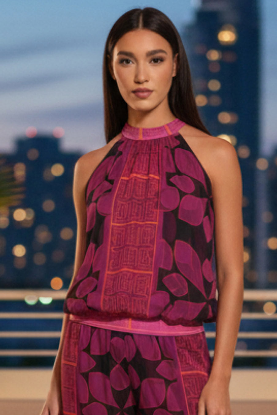 Edi Pop Print Kimono Sleeve V-Neck Top