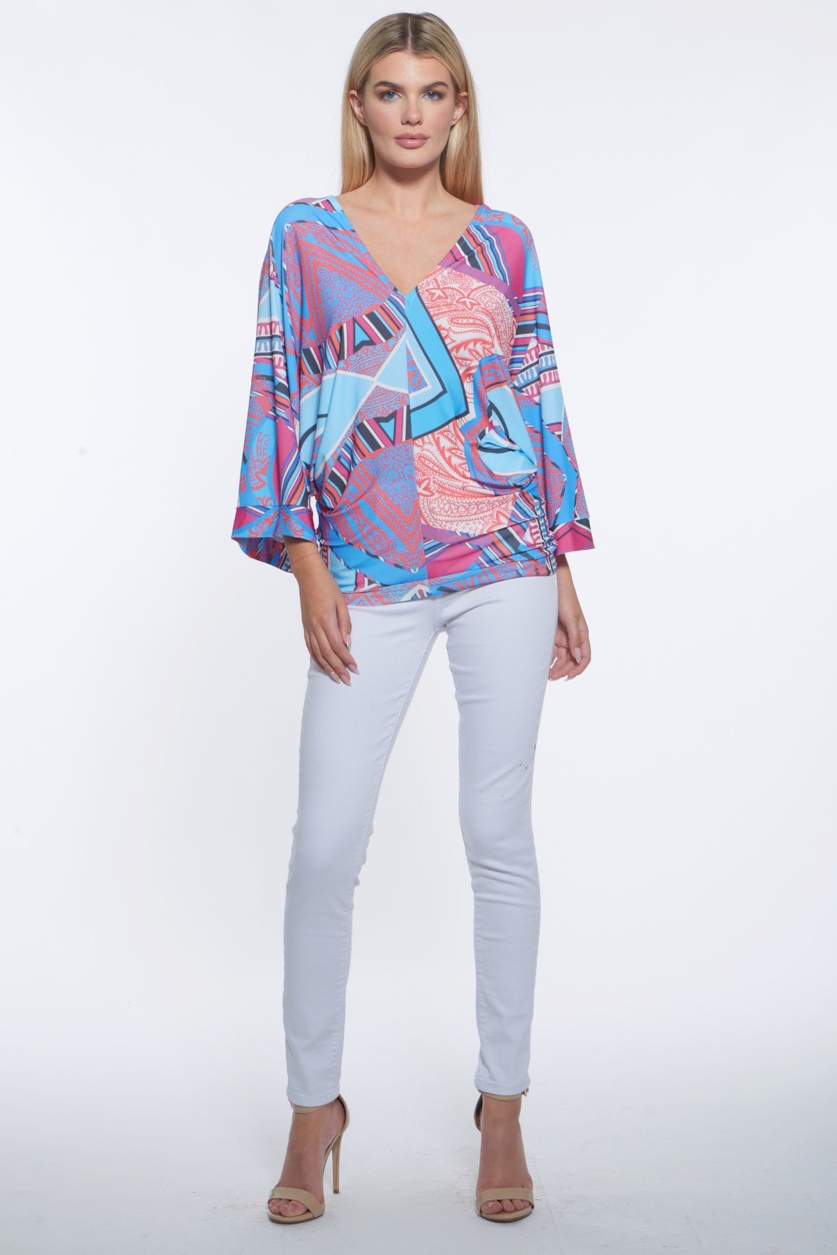 Edi Pop Print Kimono Sleeve V-Neck Top