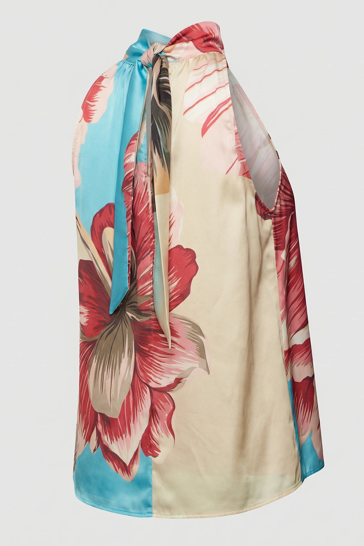 A striking halter silhouette solves the challenge of looking polished while staying cool in warm climates. The softly gathered neckline drapes fluidly over the torso, skimming the waist and hips for a forgiving, elongating effect. The elegant tie-back detail adds movement, making this design perfect with matching wide-leg pants or crisp white denim for resort evenings.