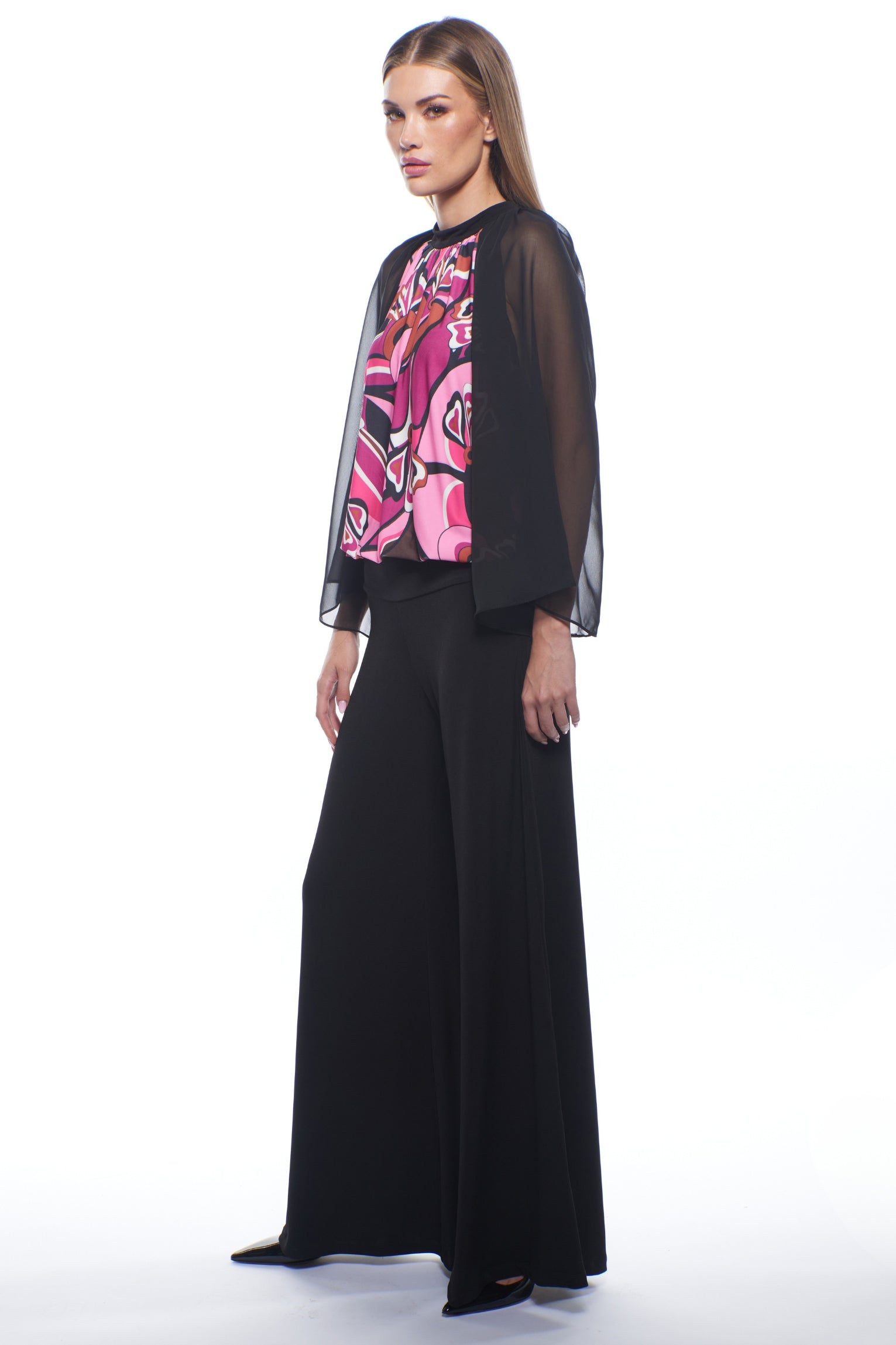 Turn heads with a bold fusion of artistry and elegance. The Aria Jumpsuit in Pink Love showcases a vibrant print framed by sheer cape-style sleeves, balancing drama with ease. A fluid wide-leg pant elongates the silhouette, while the soft gathered bodice and tie-back detail create graceful movement. Designed for both statement-making evenings and chic daytime wear, it delivers effortless sophistication with modern versatility.