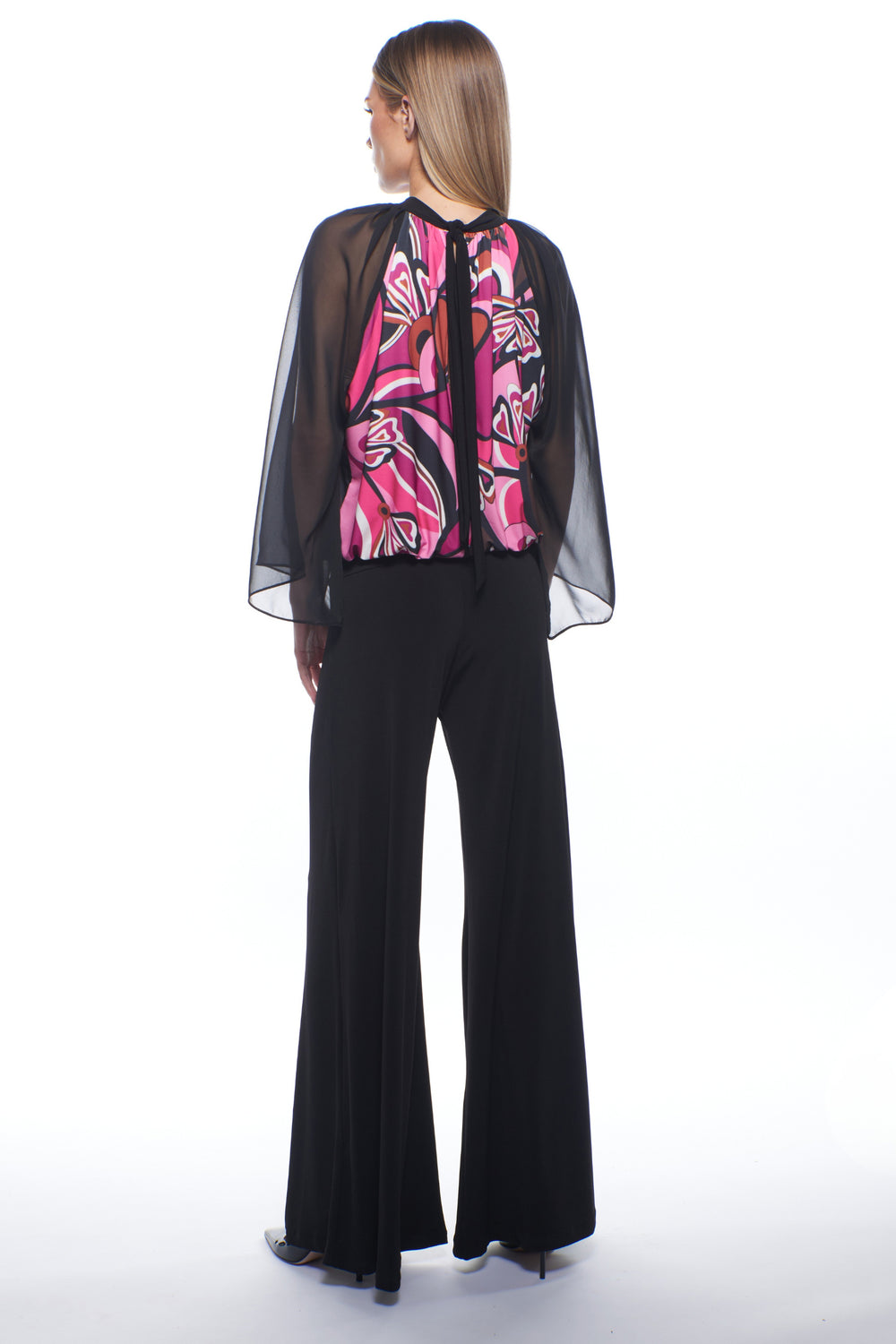 Turn heads with a bold fusion of artistry and elegance. The Aria Jumpsuit in Pink Love showcases a vibrant print framed by sheer cape-style sleeves, balancing drama with ease. A fluid wide-leg pant elongates the silhouette, while the soft gathered bodice and tie-back detail create graceful movement. Designed for both statement-making evenings and chic daytime wear, it delivers effortless sophistication with modern versatility.