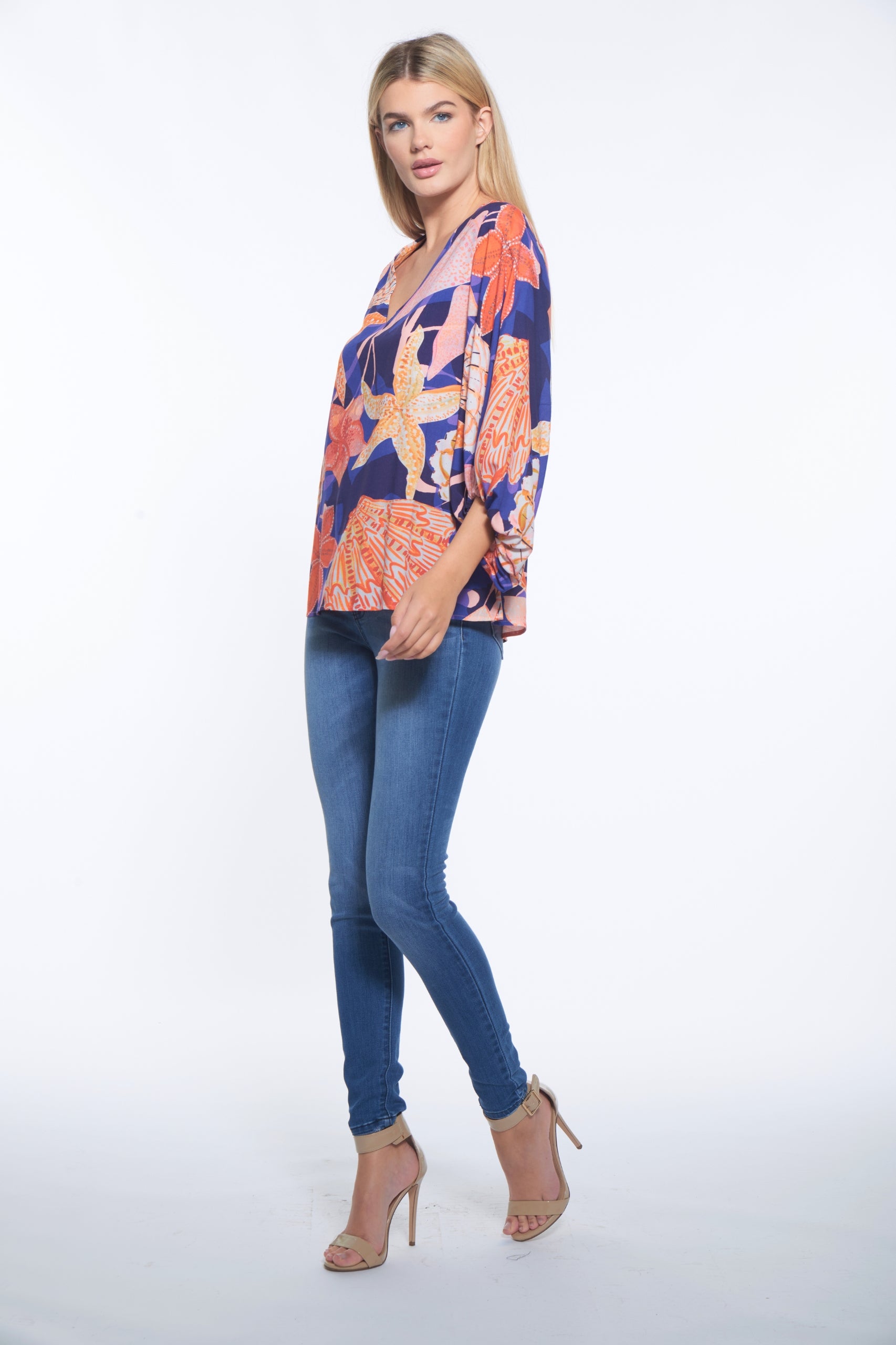 Float through summer in the Bubble Top in Adventure Print — a breezy, fashion-forward blouse that blends drama and ease. Designed with a voluminous silhouette and billowy sleeves, this top creates movement and allure with every step. The V-neckline adds balance to its airy shape, while the Adventure print ensures you're always vacation-ready.