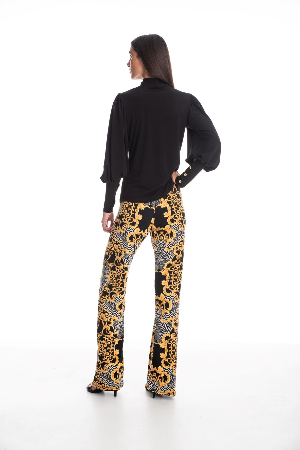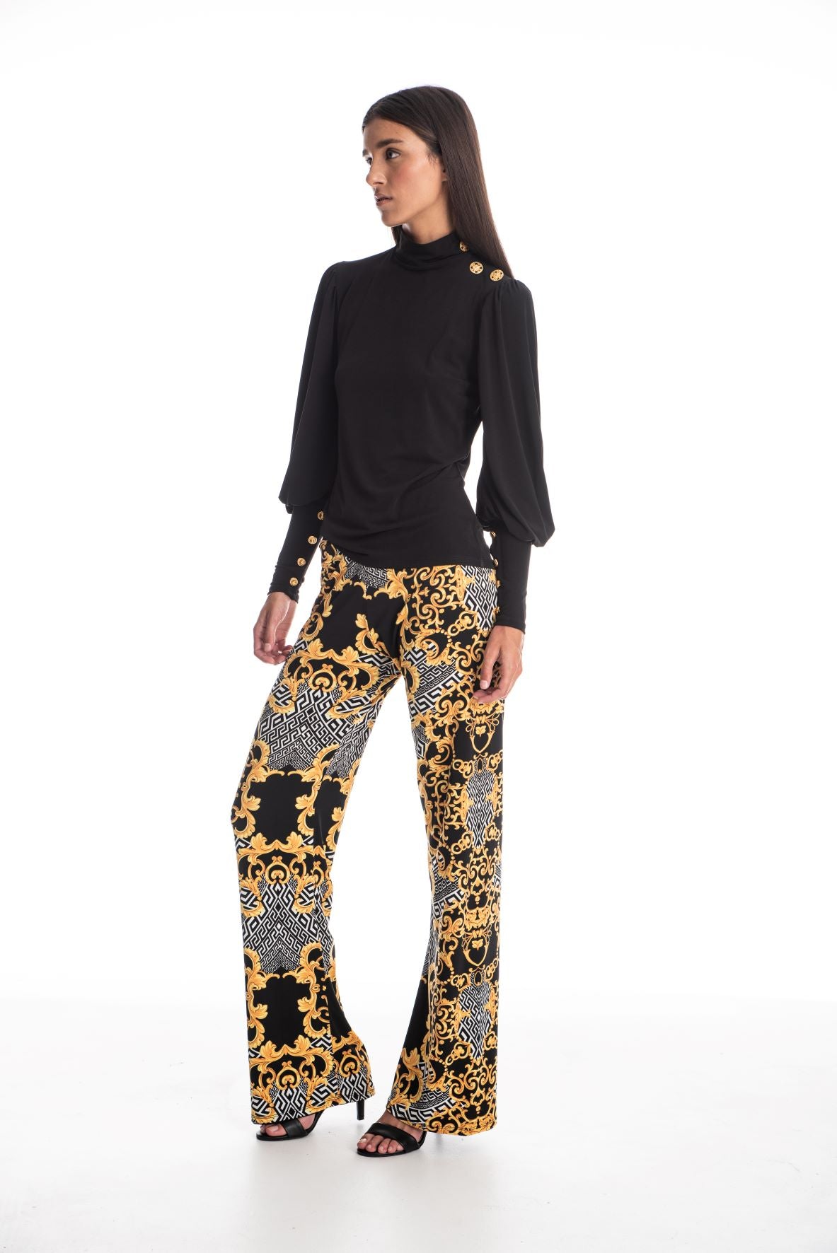Make a statement with a timeless top that is classic but on-trend. Featuring a high neck, fabulous details on the cuffs and one shoulder. The Vicky top is great for day or night.