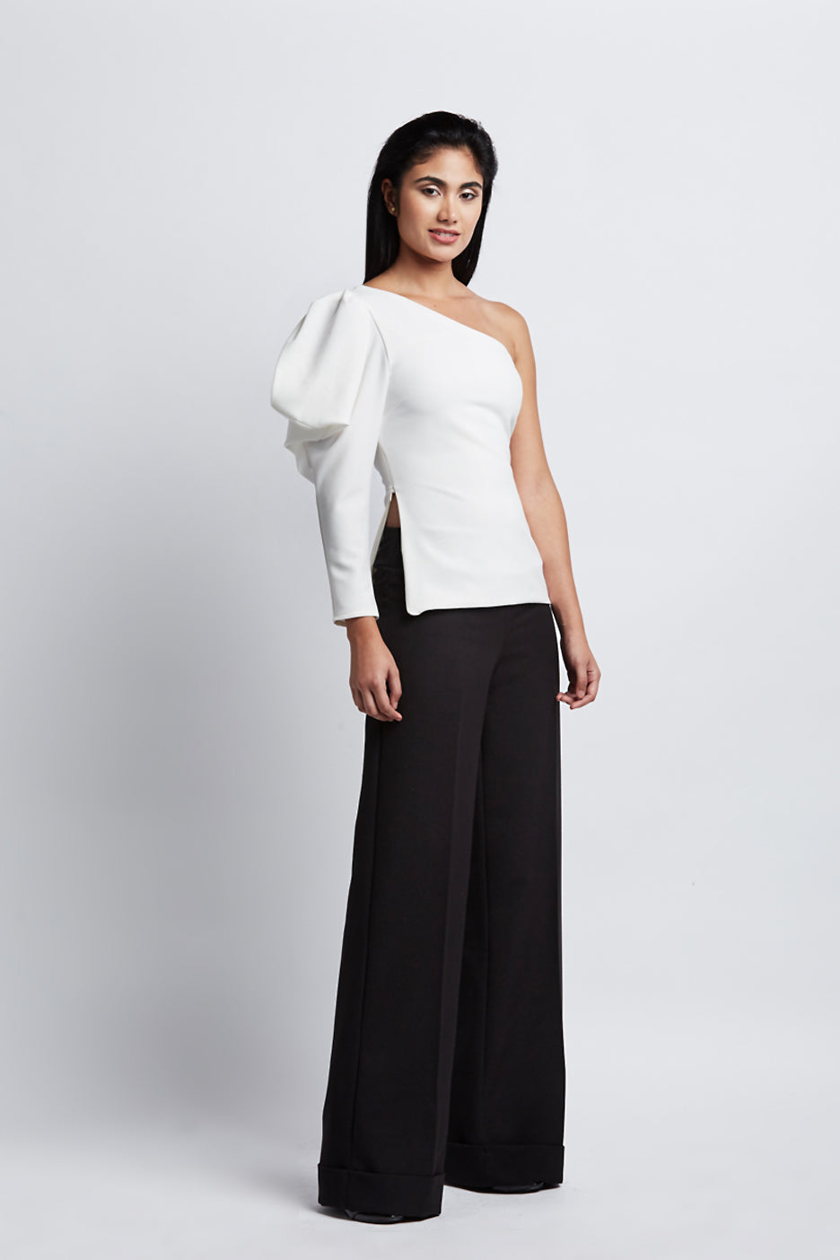 Designed to leave everybody speechless, the Irina Top by Julian Chang is a must-have in your wardrobe. Add a sleek and chic touch to your outfit with an asymmetrical neckline, a one shoulder puff long sleeve and a fitted silhouette.