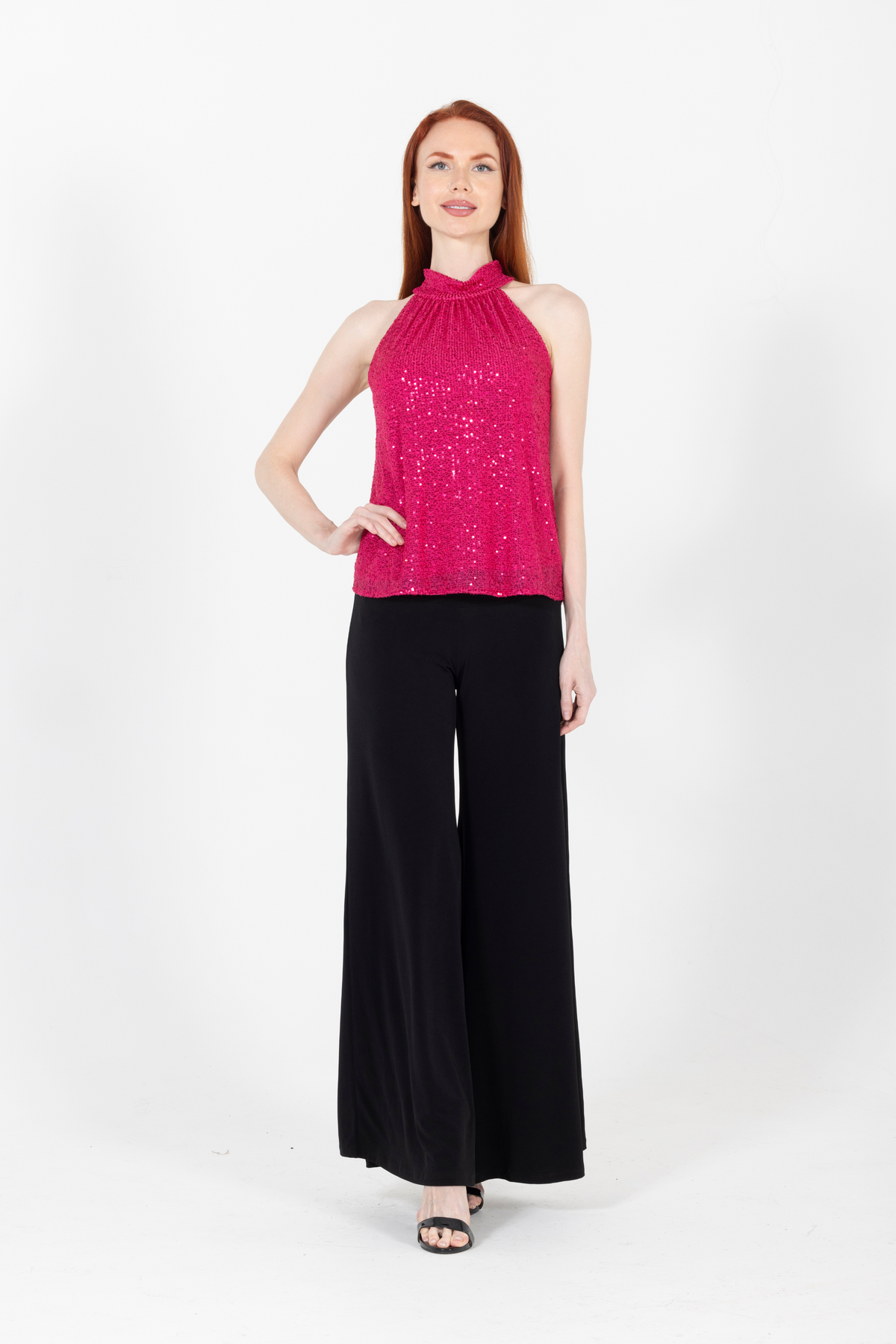 The Kiki Top in Pink is a playful and stylish piece, offering both comfort and elegance with its flattering fit and soft fabric. Paired with the classic Lola Pant in Black, this combination adds a fresh, fun touch to your wardrobe.